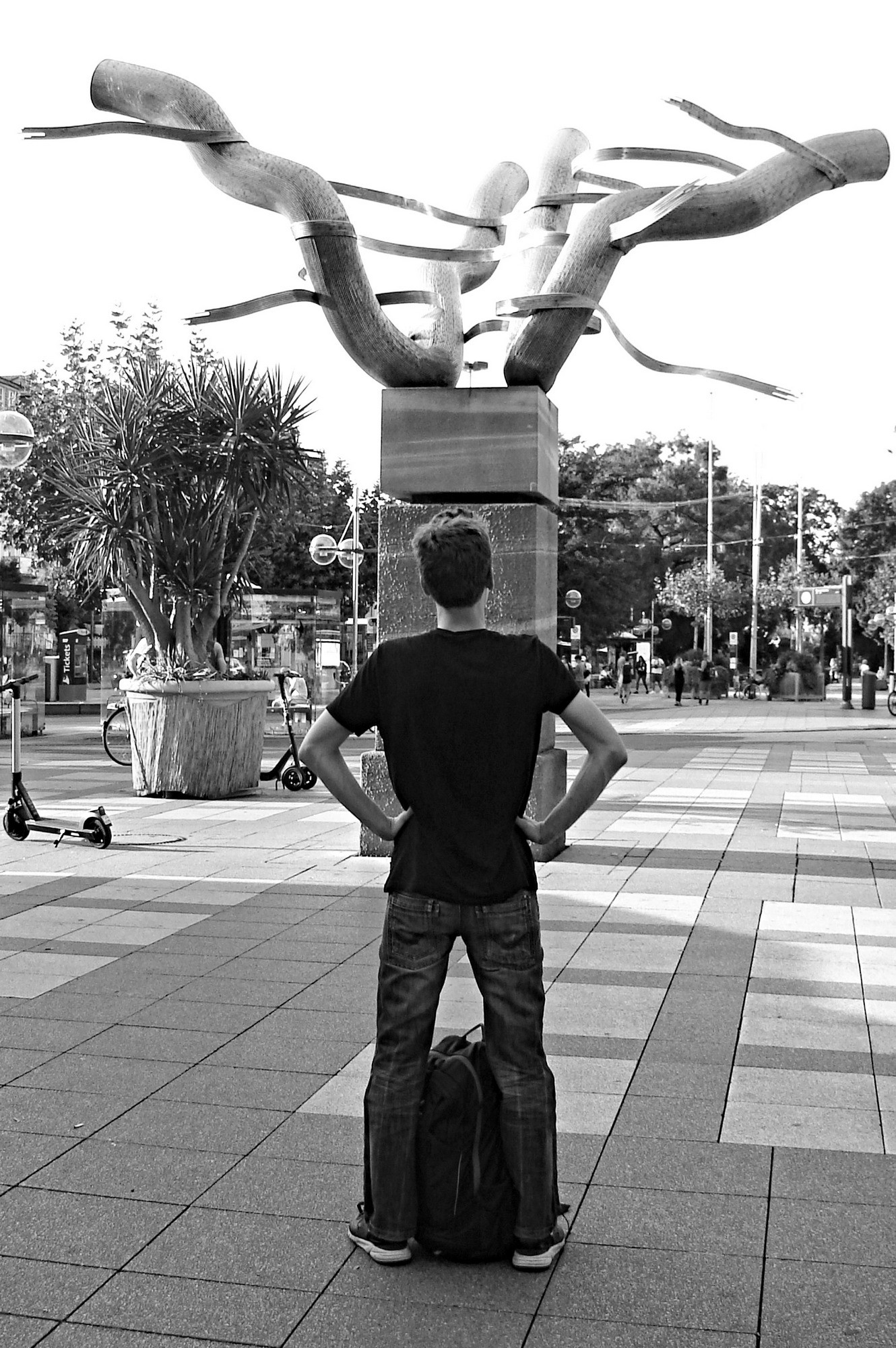 Gefordert war, zwei Objekte, die ursächlich nichts miteinander zu tun haben, zu einem Motiv zu verbinden. Die Aufnahmen sollten direkt in der Kamera entstehen. Die Art der fotografischen Umsetzung, beispielsweise durch entsprechende Positionierung, Nutzung von Spiegelungen oder Verdichtung mithilfe einer Brennweite, ist den Teilnehmern freigestellt.