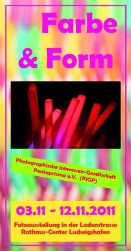 Die Photographische Interessen-Gesellschaft Pentaprisma (PIGP) Ludwigshafen, bestehend aus 13 Mitgliedern, hat in ihrer aktuellen Ausstellung ganz bewusst diese beiden Gestaltungselemente als vorrangiges Stilmittel bei ihren rund 60 dargebotenen Bildern eingesetzt. Das Ergebnis dieser fotografischen Auseinandersetzung ist in der Zeit vom 03.11 - 12.11.2011 in der Ladenstraße des Rathaus-Centers Ludwigshafen zu den üblichen Ladenöffnungszeiten zu sehen.