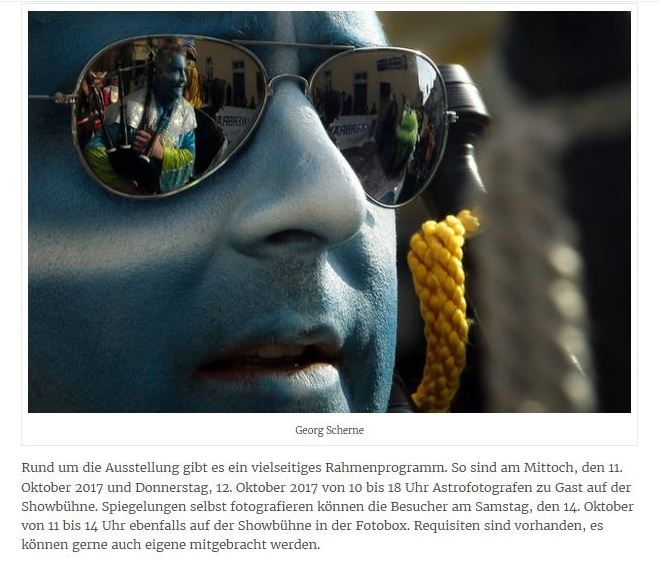 Als kleines Highlight der Ausstellung bieten wir am Samstag, den 15.10.2016 von 11:00 bis 14:00 Uhr eine sogenannte Fotobox an. Hier können sich Besucher der Ausstellung in einem besonderen/bzw. witzigen Outfit von uns fotografieren lassen, die Bilder erhalten die Portraitierten kostenlos in Form einer Datei. Requisiten sind vorhanden. Es können aber auch gerne eigene mitgebracht werden (z.B. Hüte, Schals, Handschuhe, Schirm, Masken, alten Klamotten oder Ähnliches).